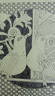 Die Bildwelt von Arnold Busch entwickelt sich aus feinen Linien, die sich bis ins Dunkle fortsetzen. Die Gewebestruktur aus der Tuchmacherindustrie, Tiere, Voluten und Gaffköpfe sind miteinander verwoben. So entsteht eine eigene realistische Imagination oder imaginierte Realität. Die Gewebe: noch eine Verbindung zwischen den Städten Bielefeld und Görlitz. |